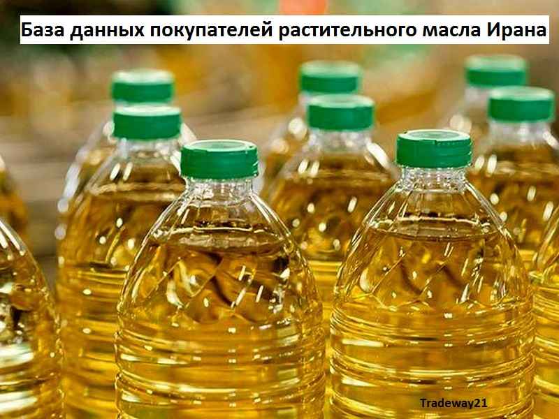 База иранских покупателей растительного масла. Иранские импортеры растительного масла Ирана. Мы предоставляем реальные данные компаний-импортеров растительного масла Ирана. В базу включены предприятия, осуществляющие деятельность и все адреса иранских компаний импортеров растительного масла. Экспорт растительного масла в Иран из России и Казахстана. База иранских компаний импортеров растительного масла.